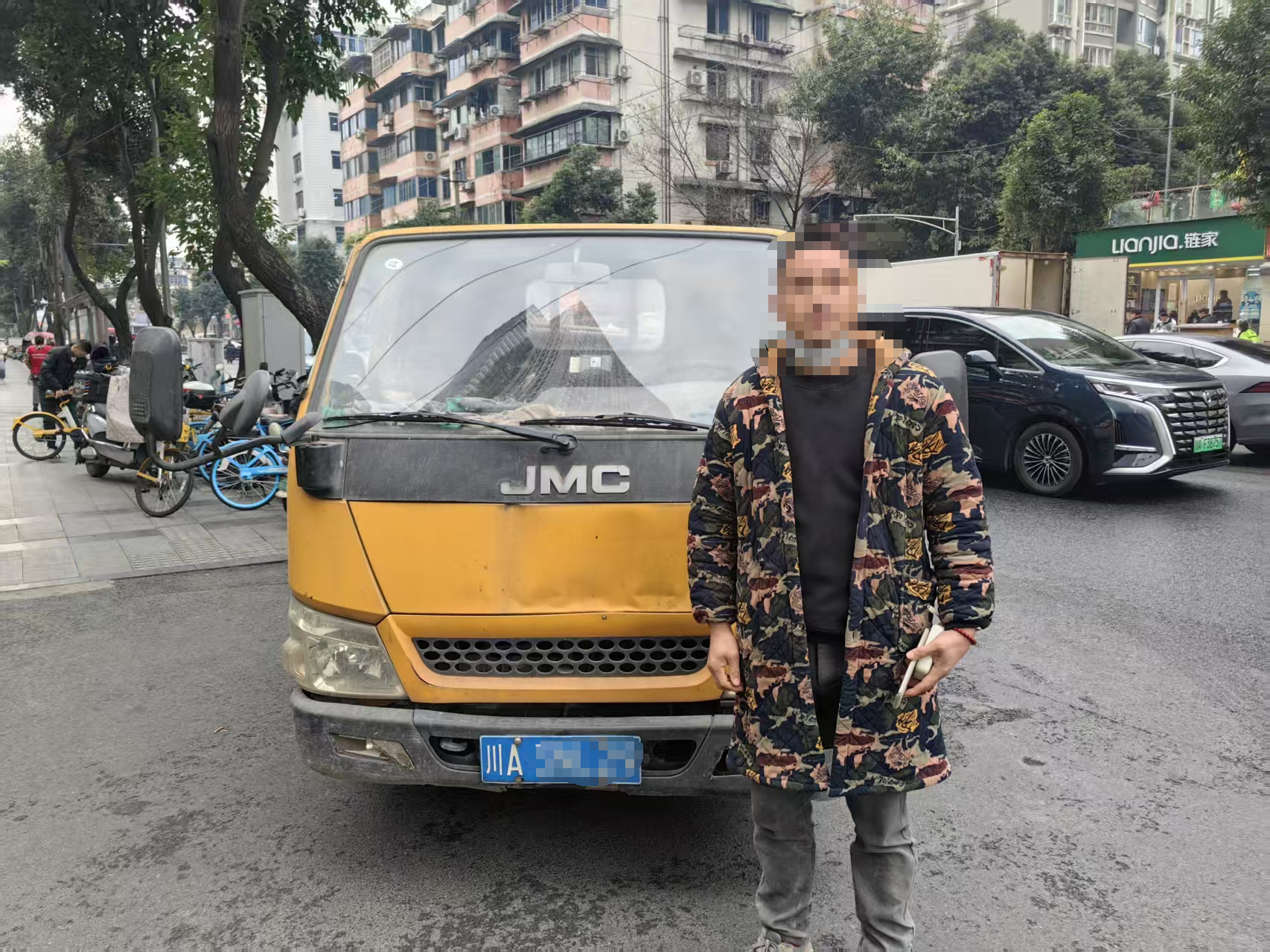 1月7日早7时许,成都交警三分局民警在巡逻时,发现一辆轻型栏板货车违规通行。拦截检查时,民警察觉其前号牌安装松动,存在人为改装痕迹。经细致查看,一个由简单连杆和绳索构成的“手动翻牌器”被当场揭露。驾驶员在驾驶室内一拉一拽,就能使前车牌向前倾斜,意图在通过电子监控点位时“隐身”。